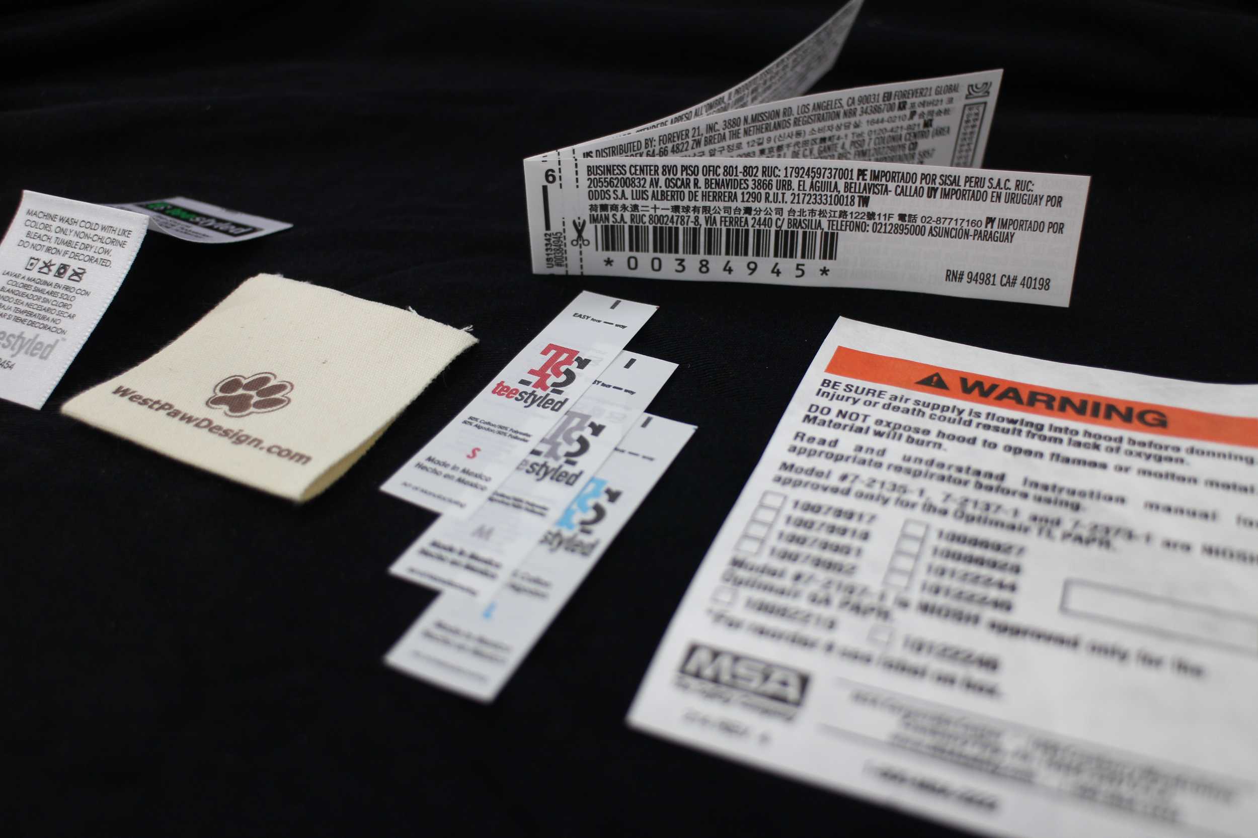 Pea pod booklets are a specialty label that is perfect for care labels that require high information density. Utilizing a special type of nylon, the label remains sealed until ripped open which can be accomplished with a single finger's amount of force. We often receive orders for care labels that contain content translated in as many as 15 languages.